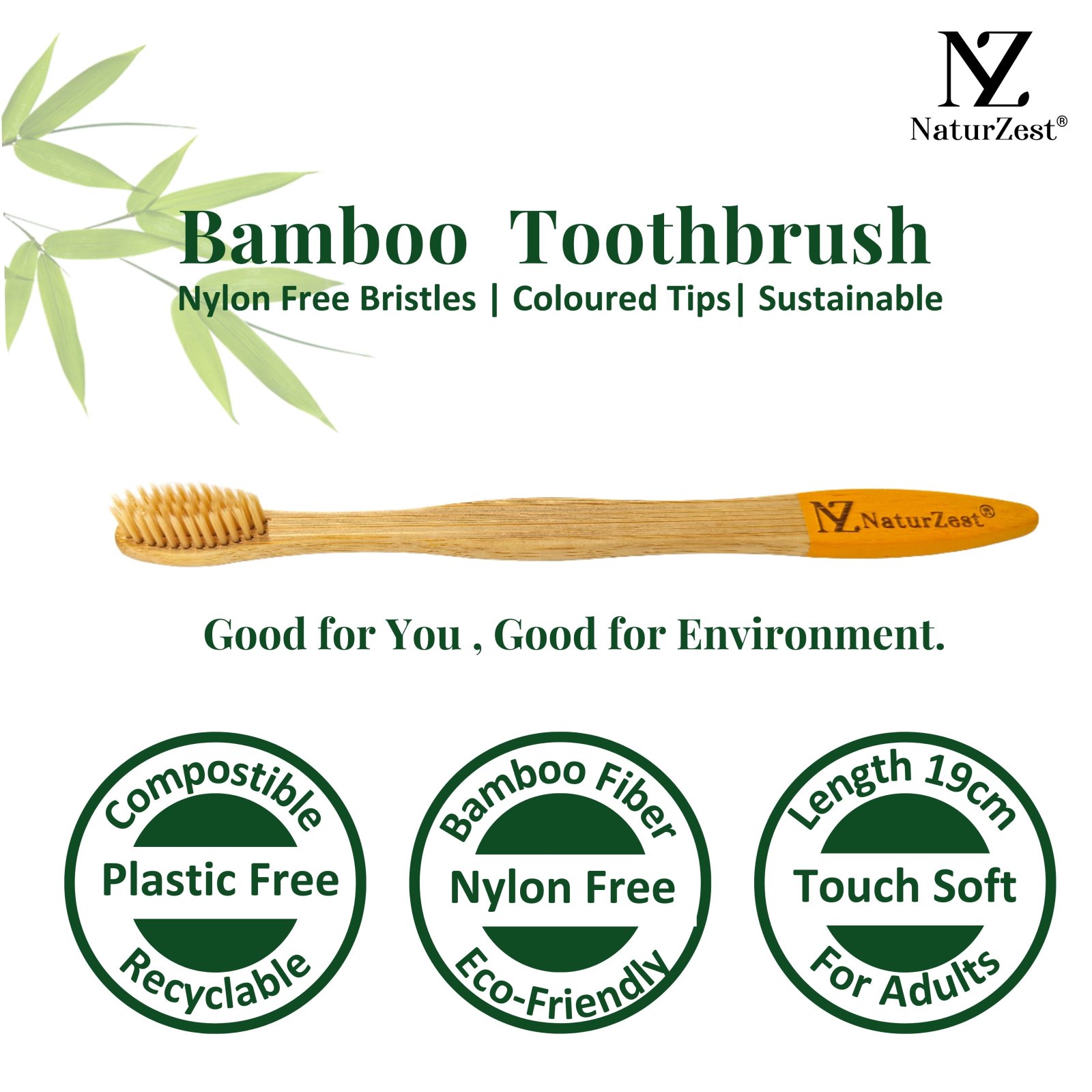 Switch to NaturZest Bamboo Toothbrush—good for your teeth, better for the planet. 🌱